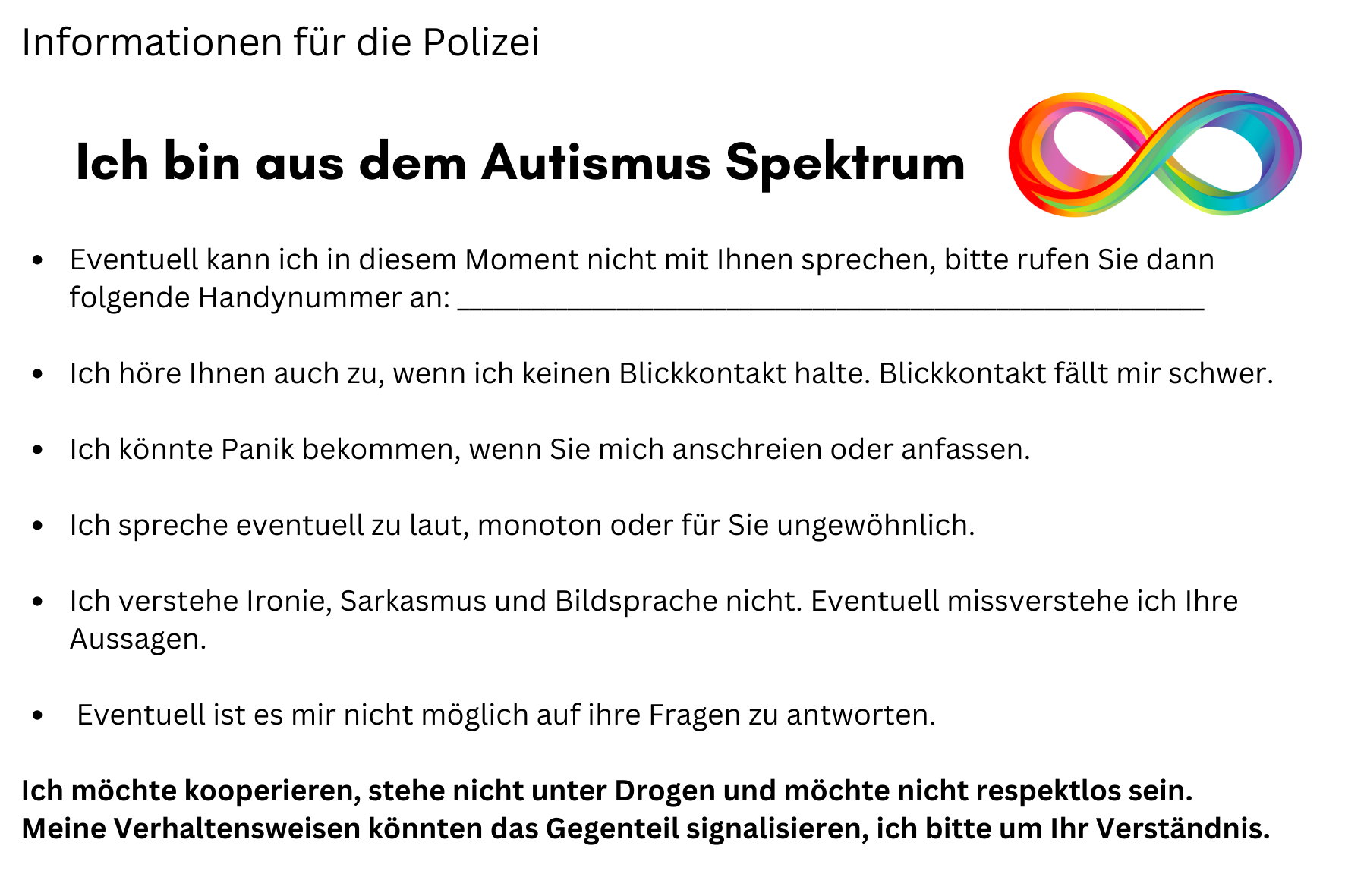 "Informationen für die Polizei" - Ich bin aus dem Autismus Spektrum